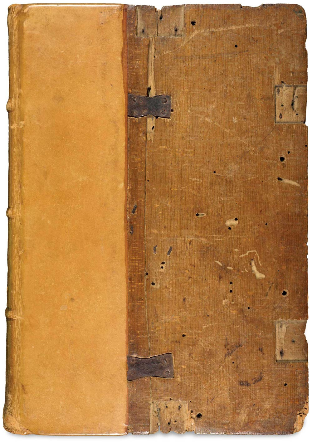 Printed books don’t have the same kinds of layout marks that manuscripts do, but the process of printing, especially during the period in which printing was done by hand, can also leave its traces in the form of holes. One of the more interesting pieces of evidence left by the operation of the handpress is the presence of “point holes.” These holes, which are often mistaken for the numerous holes that were made when the book was sewn for binding, occur in different places in books of various formats (e.g., folio, quarto, octavo, duodecimo). They’re hard to find, though, because they’ve usually been trimmed off or made invisible by the binding of the book. “Points” were the sharp metal projections used to pierce a sheet of paper and hold it in place on the tympan of a printing press, and the points needed to be placed carefully (and asymmetrically) to make it obvious to a pressman if a sheet were turned the wrong way around when it was put back on the press to print its other side. Point holes can be identified by their asymmetrical placement, and they’re most often visible in untrimmed books that are unbound, or which have been disbound. They tend to be much more visible in incunabula than in later books, and though they can be difficult to find, they’re interesting to look for, and they remain unknown to most collectors.