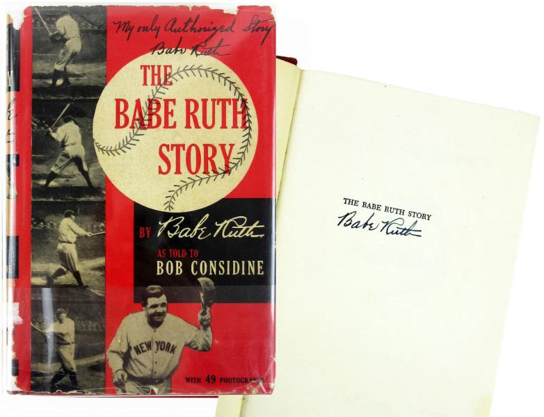 First edition of The Babe Ruth Story (1948), written by Ruth (as told to Bob Considine) and signed on the half-title page by Ruth. Estimate: $6,000-7,000
