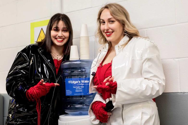 Teya & Salena rehearsing Who The Hell Is Edgar? for Austria at the first rehearsal of the second semi-final at Liverpool Arena