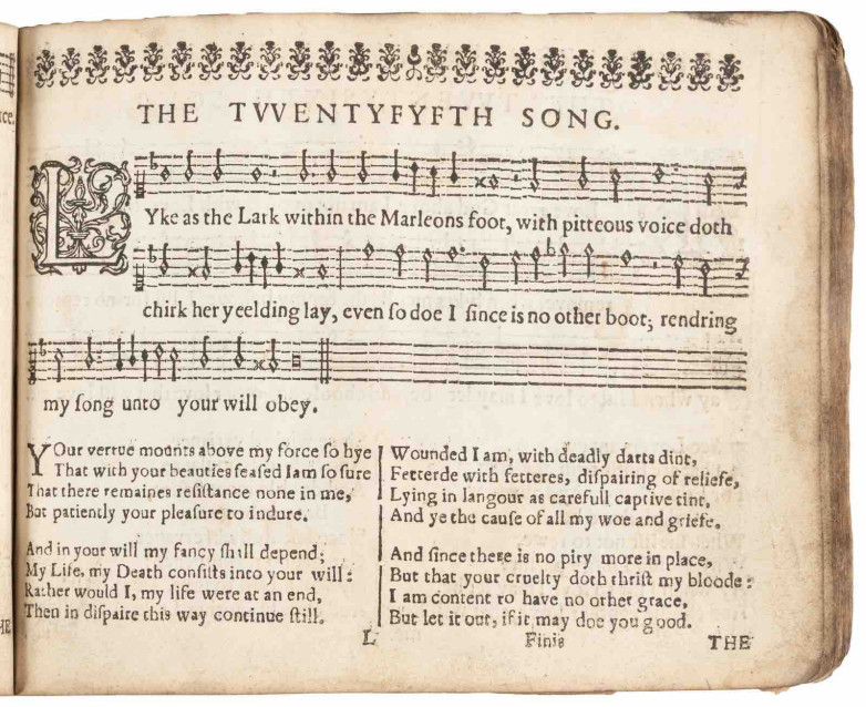 It's lot 303, a first edition the 1662 Cantus, songs and fancies: To thre, foure, or five partes, both apt for voices and viols. With a briefe introduction of musick, as is taught in the musick-schoule of Aberdene by T. D. Mr. of Musick by Thomas Davidson and John Forbes (estimate: $8,000 - $12,000).