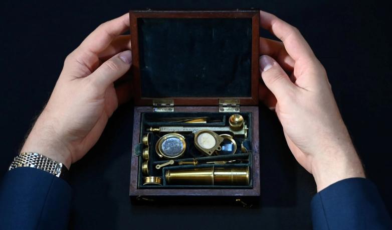 The Darwin Family Microscope: A Gould-type microscope by Cary, with accessories in original mahogany box. Estimate: £250,000-350,000 ($290,000-410,000).