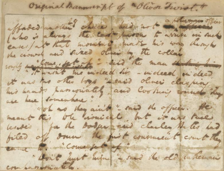Oliver Twist was first published chapter-by-chapter in issues of the literary magazine Bentley’s Miscellany between 1837 and 1839 under the writer’s pen name, Boz. Dickens regularly performed sections from the novel on his grueling reading tours from 1853 onwards. However, he only included the shocking Sikes and Nancy murder scene on his 1868 farewell tour of the U.S. and Britain, and then only reluctantly after first giving a test preview to friends and critics at his home – a letter to his friend Thomas Beard inviting him is on display in the exhibition.