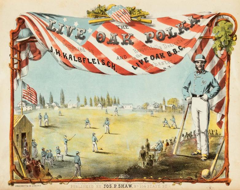 The earliest known baseball lithograph, for "The Live Oak Polka," offered at Potter & Potter this week.