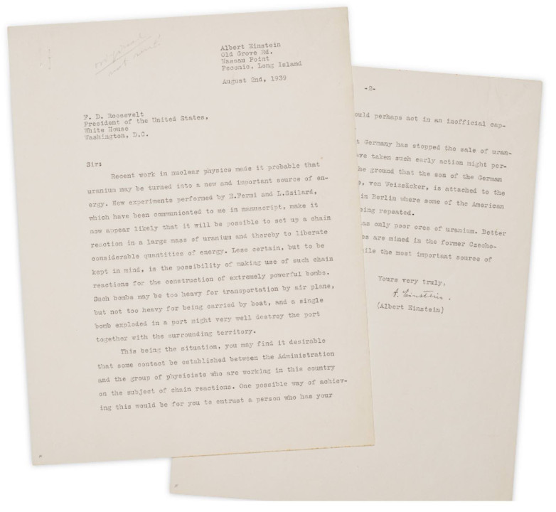 Einstein’s Nuclear Warning Letter to President Roosevelt to Auction with $4m – $6m Estimate