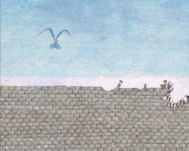 Now through November 19, New York’s Czech Center is hosting an exhibition based on his autobiographical picture book, The Wall: Growing Up Behind the Iron Curtain (2007), which won the 2008 Boston Globe – Horn Book Award for nonfiction. Peter Sís—The Wall features original drawings, photographs, documents, artifacts, and ephemera that tell the story of the artist’s childhood in Cold War-era Prague. Of the book, Václav Havel, former president of the Czech Republic, once wrote, “Peter Sís’s book is most of all about the will to live one’s life in freedom and should be required reading for all those who take their freedom for granted.”