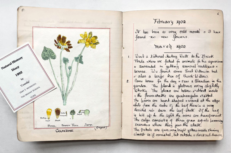 * Janette Ray Bookseller sold York Quaker schoolgirl Amy E Morrisey's natural history diary from 1902 with 34 hand painted watercolors of wild flowers and accompanying text about each and excursions to collect the samples (offered for £295)