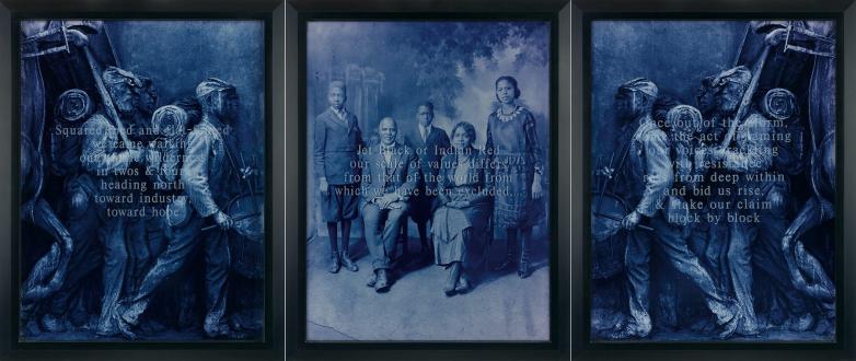 Carrie Mae Weems, Untitled, detail, seven panels of framed chromogenic prints & sandblasted text on glass, 1996-97. Sold for $305,000, a record for the artist.
