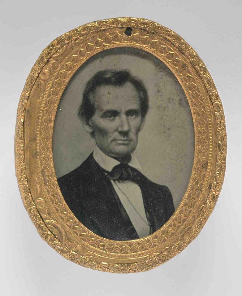 Exhibition highlights include the 1843 daguerreotype of John Quincy Adams, the earliest surviving photograph of a U.S. President. Also of note is an ambrotype pin created to promote Abraham Lincoln’s candidacy for President in 1860. This rare example of campaign ephemera reproduces Mathew Brady’s first photograph of Lincoln, an image credited with contributing to Lincoln’s victory at the polls.