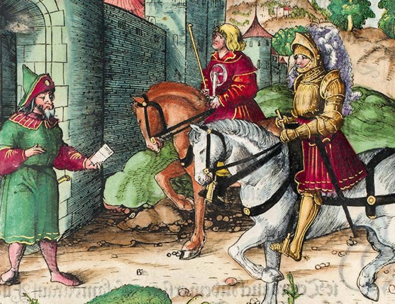 These scenes of adventure were designed by some of the best-known woodcut artists of the time – Hans Burgkmair, Hans Schäufelein, Leonhard Beck, and others – and the compilation of the cuts, begun in 1511, took until 1517 to complete. Unlike its inclusion in the Stuttgart Antiquariatsmesse, however, this book was not initially intended for sale: the Emperor rather meant it as a memorial of his great achievements, taking many years to fine-tune its stunning design. Though 40 copies of the first edition were printed on vellum, only a few were coloured.