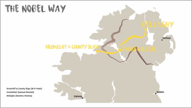 Covering 11 border counties, the maps of the Northern Literary Lands (NLL) scheme connect regions and major towns such as Derry, Newry, Dundalk, Sligo, and Armagh by linking them with writers including Nobel Laureates W.B. Yeats (influenced by his Co. Sligo childhood), Samuel Beckett (schooldays in Enniskillen, Co. Fermanagh) and Seamus Heaney (born and raised in Derry). Organisers hope it will become the world’s first UNESCO Region of Literature.