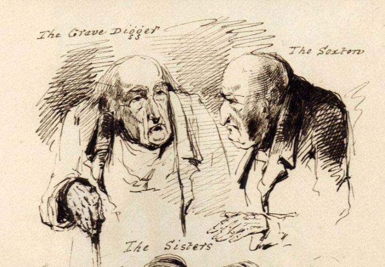 The illustrations were created by Liverpool artist James Campbell (1828-1893), known as the "most Dickensian of the Pre-Raphaelites" for his depictions of working-class life. His drawings for The Old Curiosity Shop feature several of Little Nell and two of the heads and shoulders of multiple personalities in the novel. They end graphically with “The old man dead”.