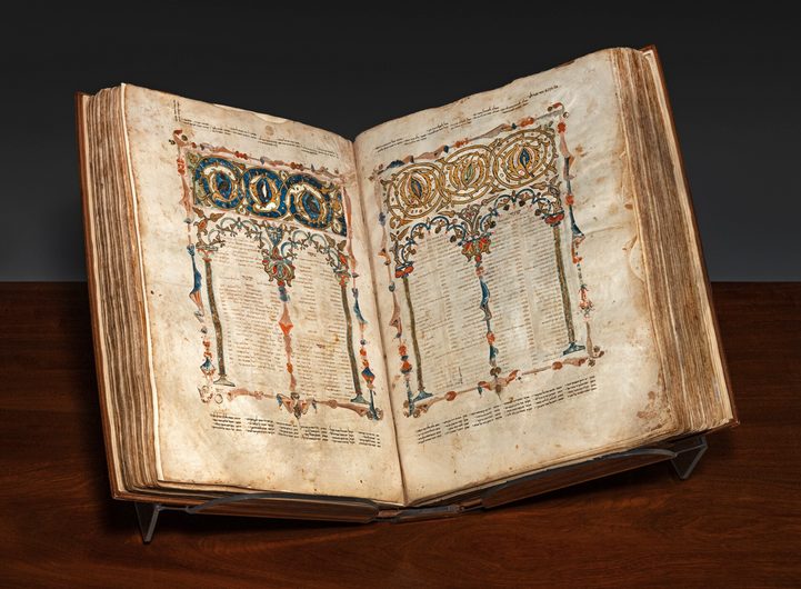 Opening from the Shem Tov Bible, completed in Spain in 1312 and offered at Sotheby's this week.