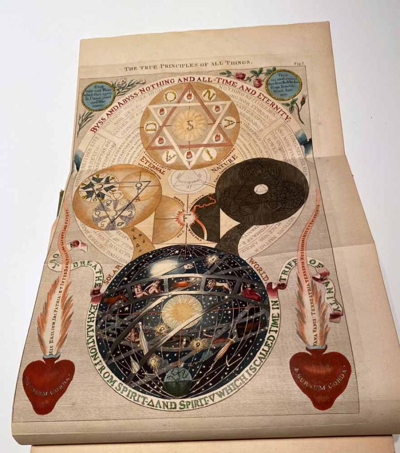 Merhige’s collection in his Beverly Hills townhouse includes subsequent titles by Böhme such as The Threefold Life of Man, Forty Questions on the Soul, and The Incarnation of Jesus Christ, along with a complete collection of the rest of his writings in their first English translations from the seventeenth century as well a second set of translations by William Law from the eighteenth century, a four-volume collection formerly belonging to the Earl of Cromer who served as consul general of Egypt from 1883–1907.