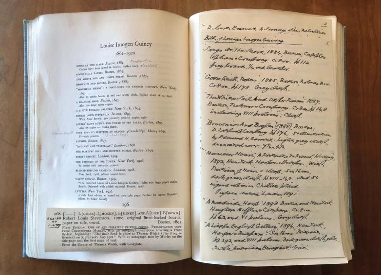 In his copy of Merle Johnson’s American First Editions: Bibliographic Check Lists of the Works of 199 American Authors (Third Edition. New York: R.R. Bowker Company, 1936), book collector Thomas Warburton added manuscript annotations to the text and inserted hundreds of leaves of clippings from booksellers and catalogues, as well as additional leaves of manuscript notes.