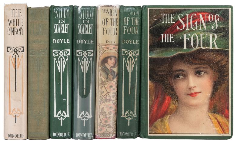 A group of seven early American, possibly pirated editions, of Conan Doyle works published by Donohue in the 1910s far exceeded their estimate with a final price of $6,000 in the A Study in Sherlock auction.