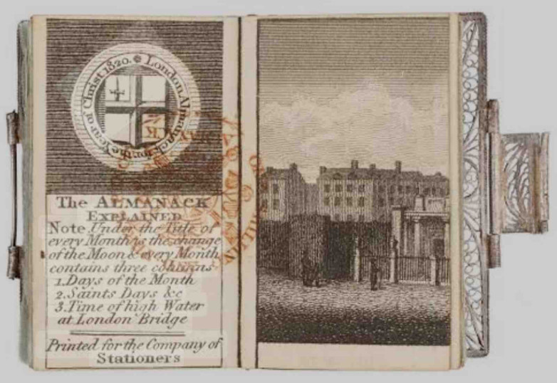 A miniature London Almanac for 1820 in a silver binding, offered by Quaritch