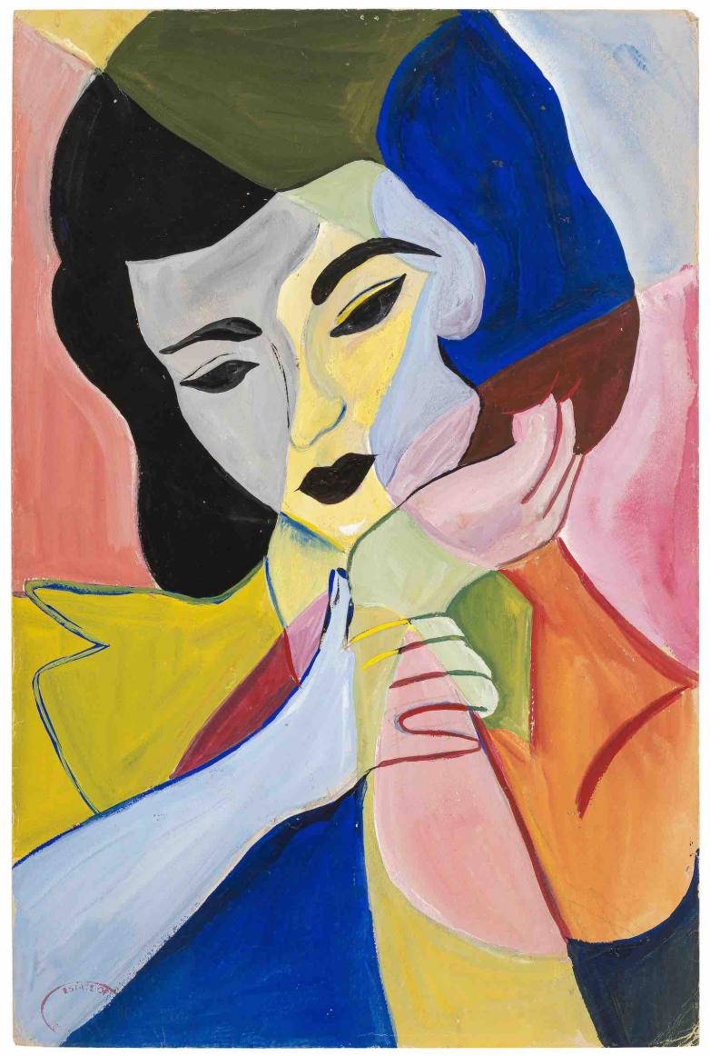 • original works of art by Plath, including a Fauvist-inspired gouache portrait of a young woman