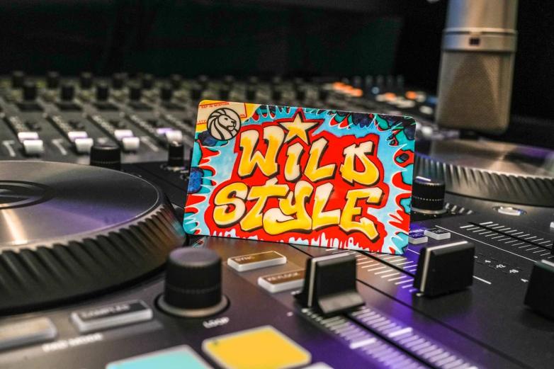 The New York Public Library chose the Wild Style mural image because the soundtrack’s original cassette is part of NYPL’s extensive hip-hop research collection at the Schomburg Center. The distinct mural created by artists Zephyr, Revolt, and Sharp serves as the art for the front of the library card, while the back of the card depicts the original soundtrack cassette.