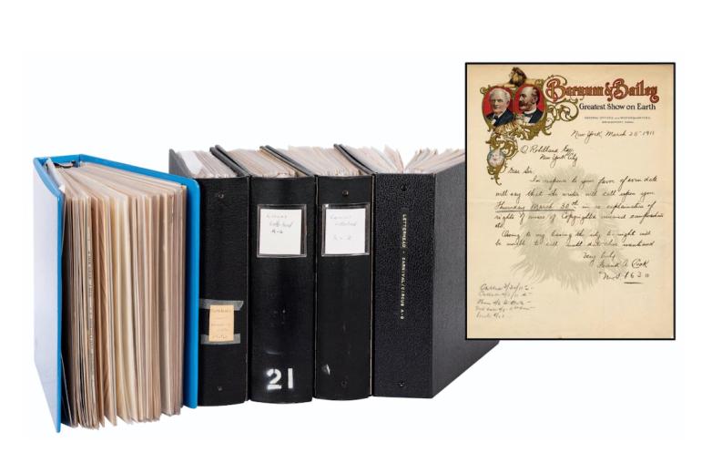 A collection of letterhead from circuses, carnivals, and Wild West shows realized $4,080.